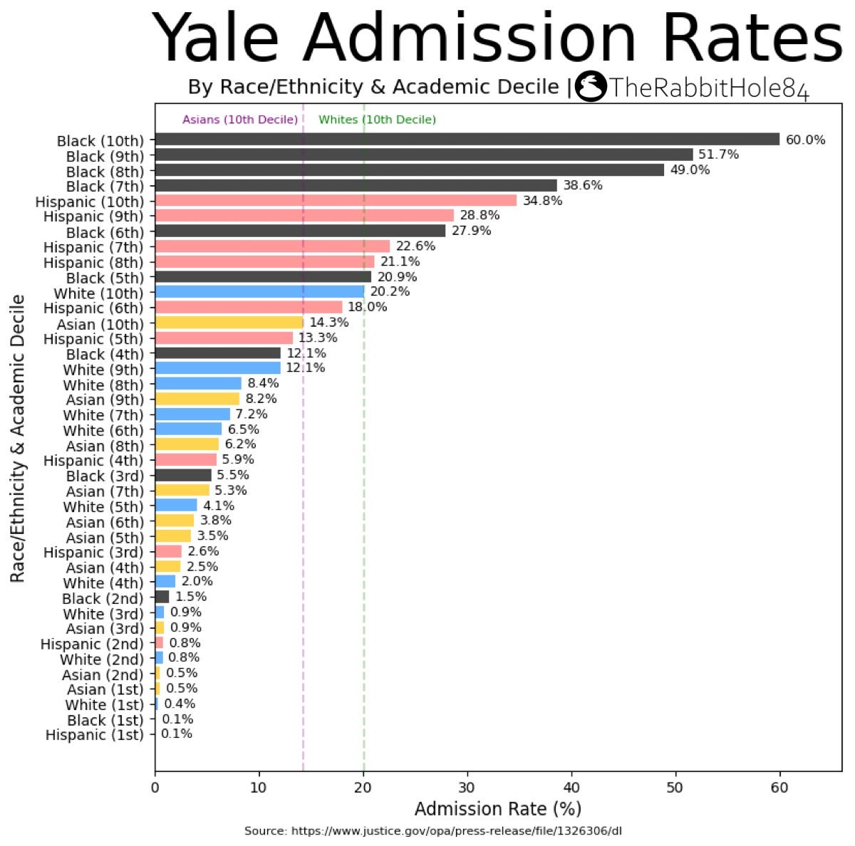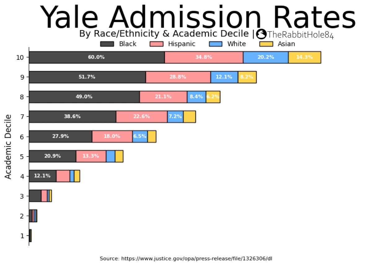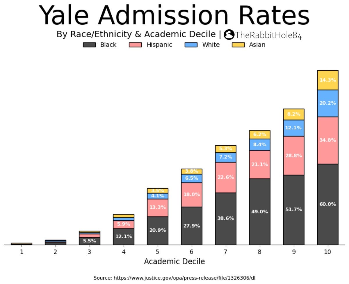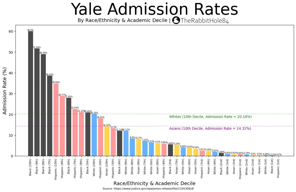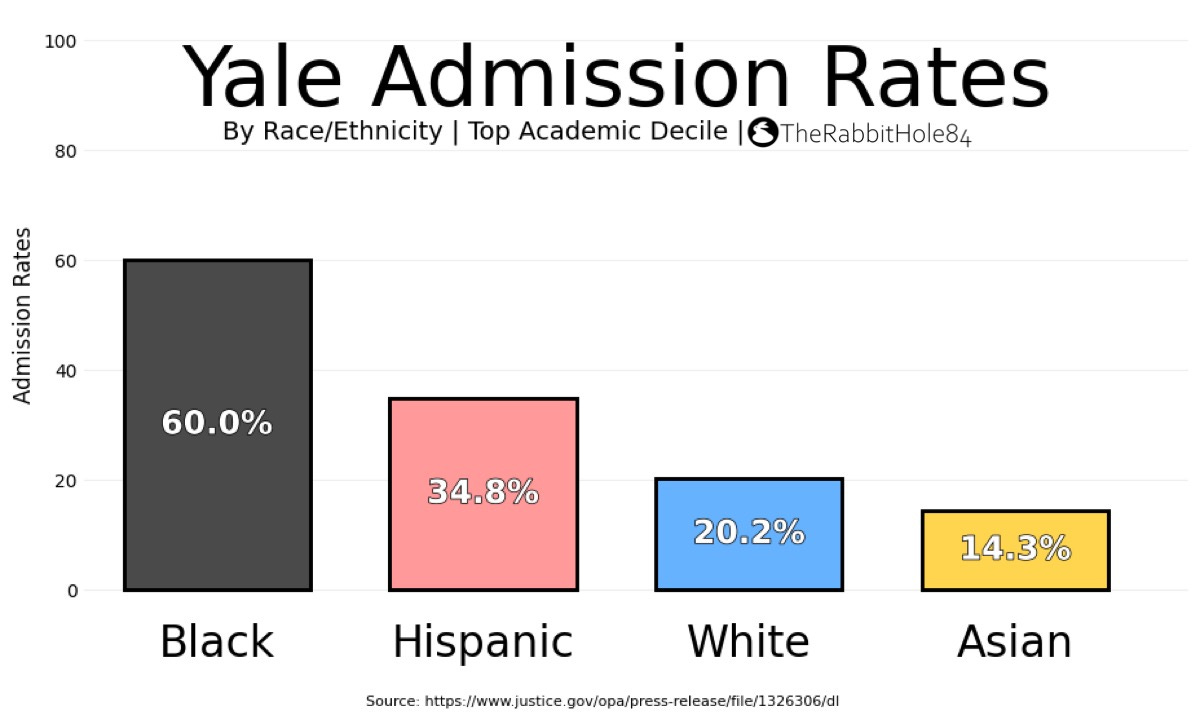 Ivy League schools have spent decades using Affirmative Action policies as a way to demographically engineer their student body. We previously covered Affirmative Action at Harvard and Medical Schools, and today will be focusing on what race preferences via Affirmative Action look like at Yale.