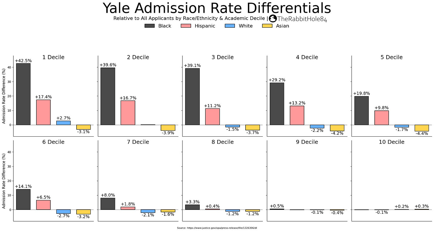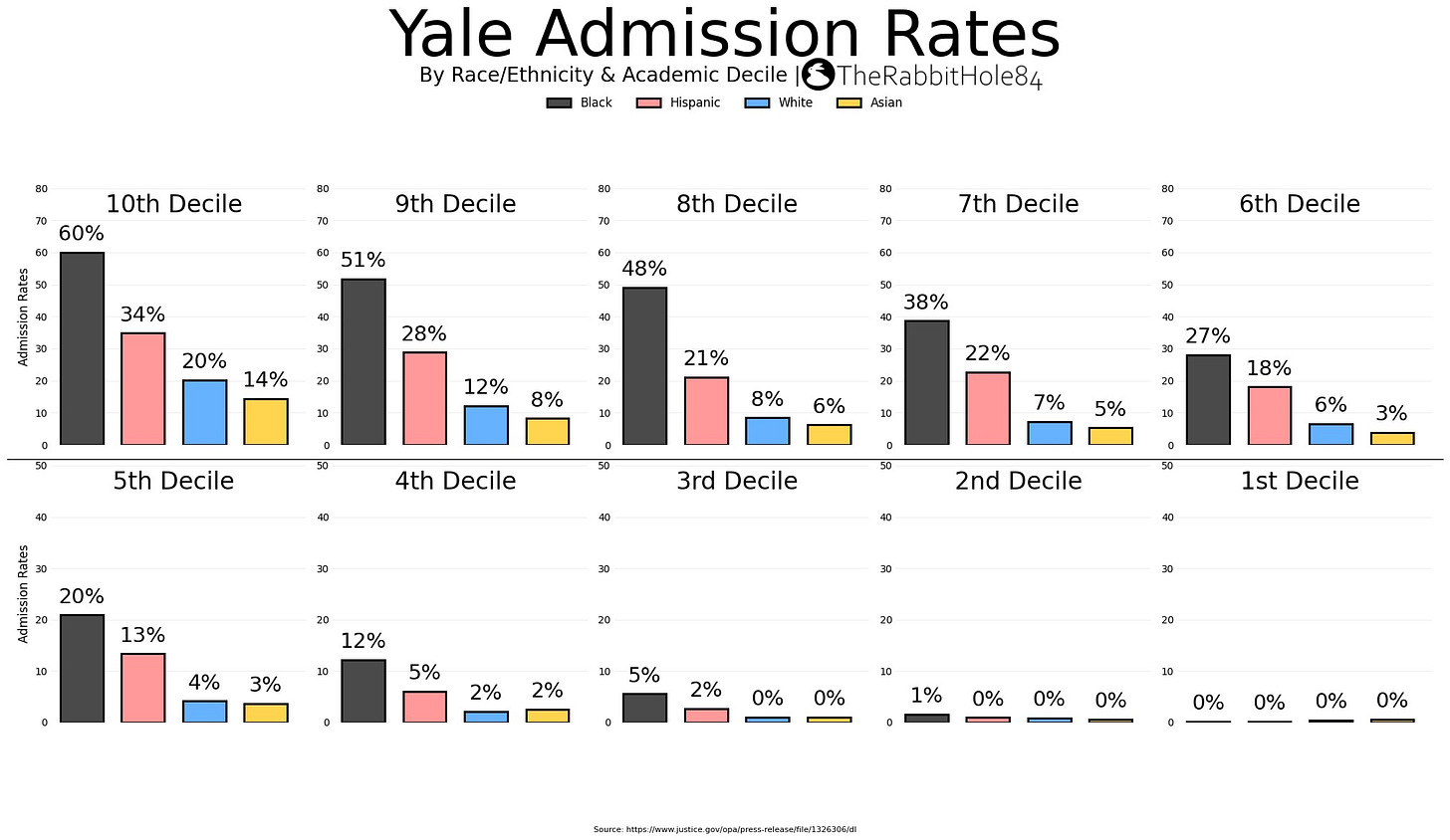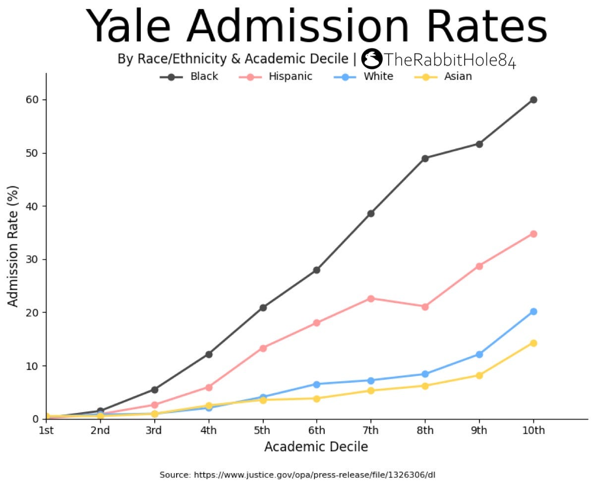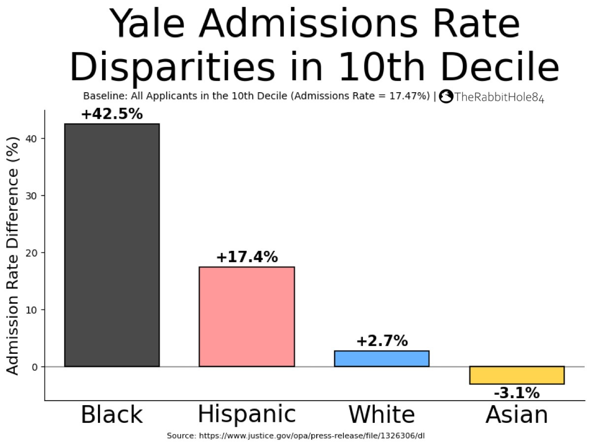 Ivy League schools have spent decades using Affirmative Action policies as a way to demographically engineer their student body. We previously covered Affirmative Action at Harvard and Medical Schools, and today will be focusing on what race preferences via Affirmative Action look like at Yale.