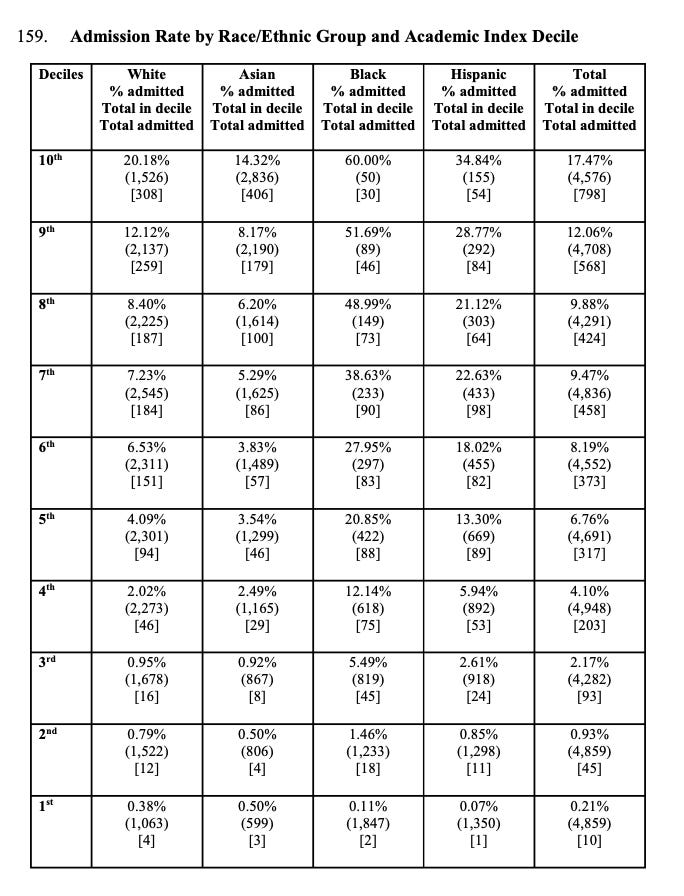 Black candidates in the 5th academic decile still have a higher chance of admission than the most qualified Asian and White candidates in the 10th decile.